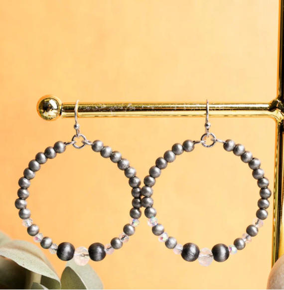 Smoketown Iridescent Bead and Silver Pearl Earrings
