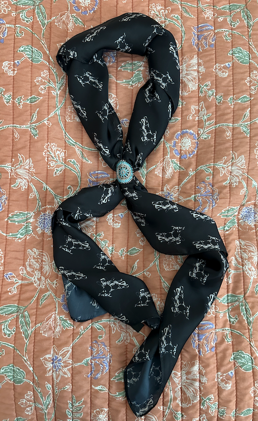 The Saddle-Up wild rag is a stylish and functional accessory. Made from high-quality polyester and is versatile. It can be work as a neckerchief, headscarf, or even tide to your bag for a touch of Western flair. Its generous size allows for endless styling options, while bold patterns and intricate design adds personality to any outfit. The Saddle-Up wild rag is both a statement piece and a practical addition to your wardrobe.